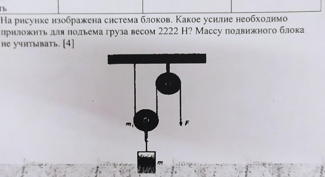 Подвижный блок даёт выигрыш в силе в 2 раза. Следовательно, минимальное усилие: