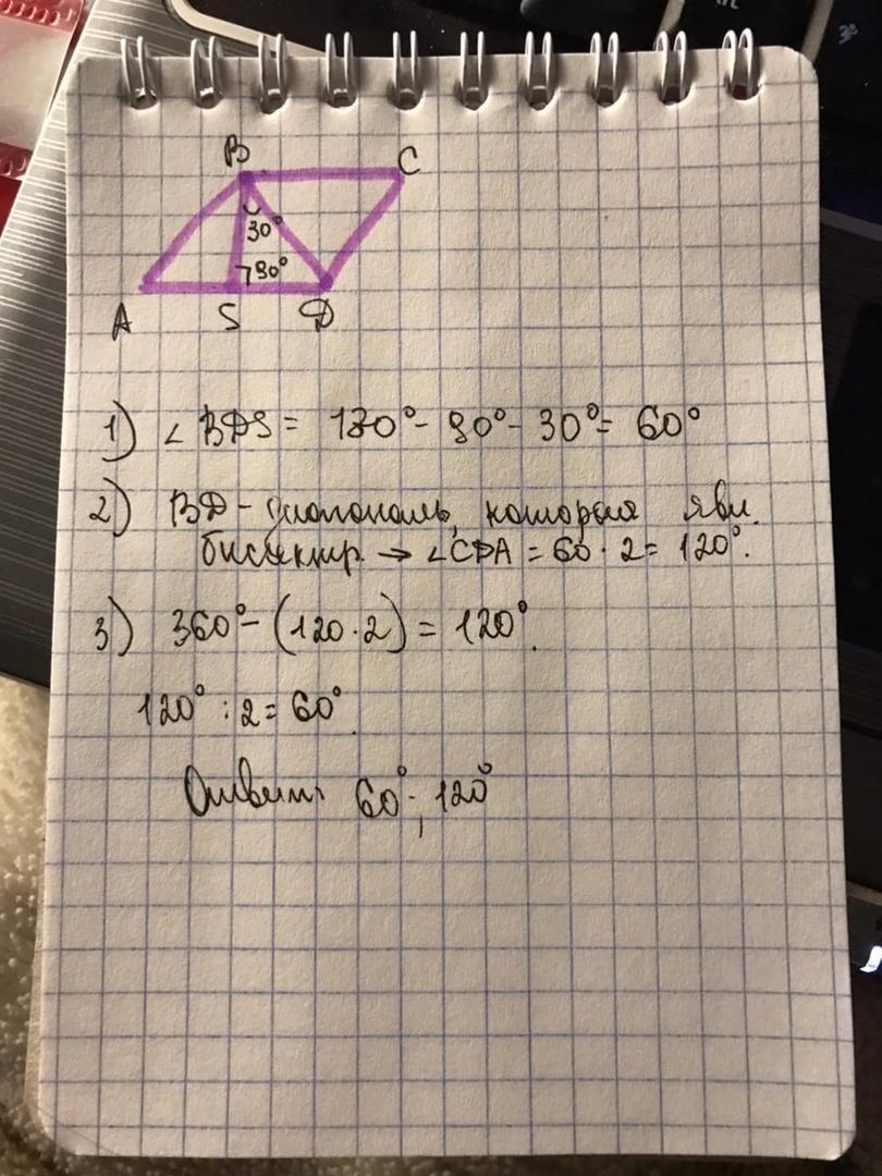 вычисли углы ромба если угол между диагональю и высотой, проведенной из вершины тупого угла ромба, равен 30°