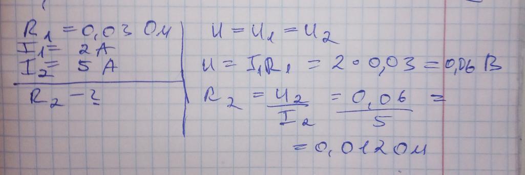 Амперметр опором 0,03 Ом розраховано на вимірювання сили струму до 2 А. Визначте опір шунта, що дозволить вимірювати за допомогою даного ампер- метра силу струму до 5 А.