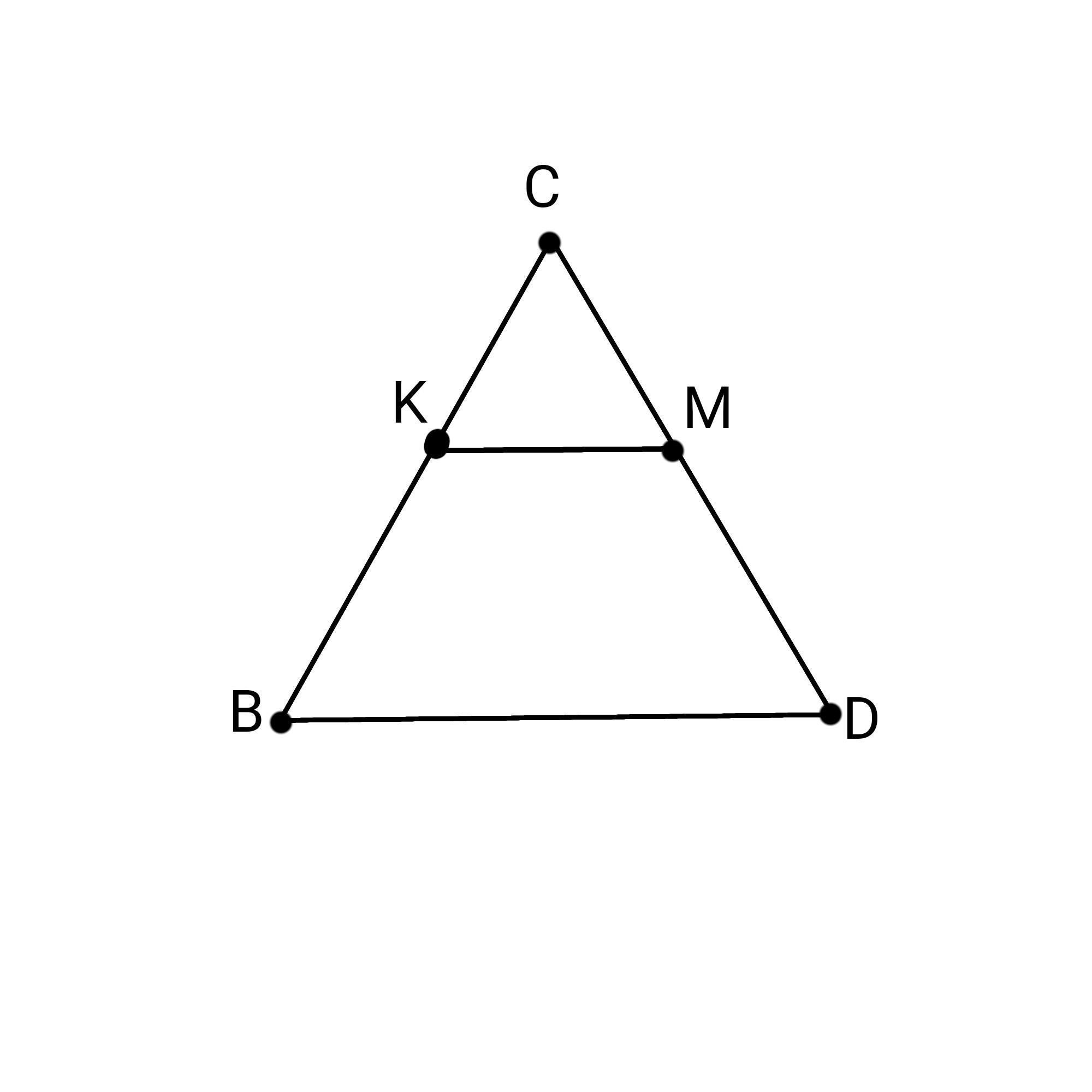 Треугольник ΔBDC подобен треугольнику ΔKMC, потому что при сечении параллельной основанию прямой, она отсекает треугольник подобный исходному.