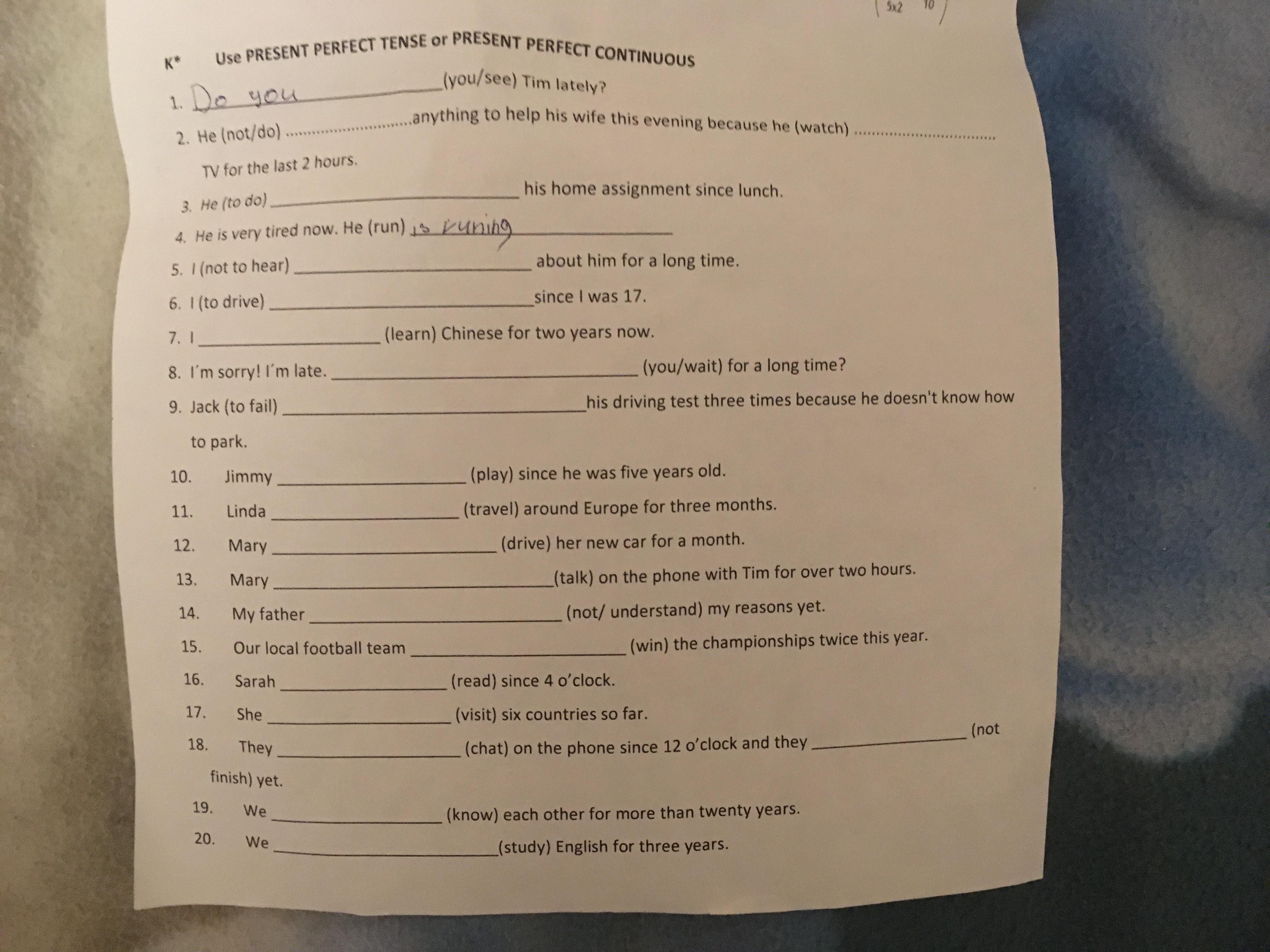 То есть видим тот же вспомогательный глагол have и те же правила касательно его формы has,что и в Present Perfect,но далее ставится been и глагол с окончание -ing.