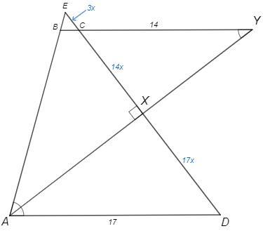 Найдите длину отрезка AB, если известно, что AD=17 и CY=14.