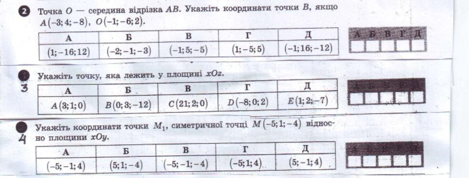 4. Если точка симметрична данной относительно плоскости хОу, то координаты х и у не меняются, а координата z будет противоположной.