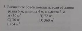 5. Вычислите объём комнаты, если ее длина равна б м, ширина 4 м, а высота 3 м 6 4