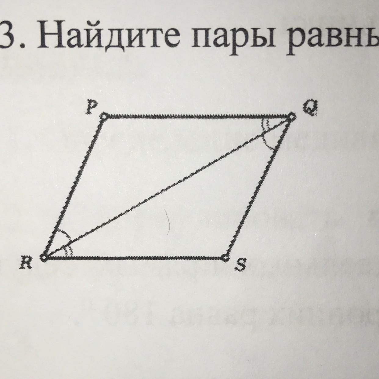 1. треугольники RPQ и RSQ будут равны( так как углы PRQ=RQP, углы PQR=QRS, RQ-общая)