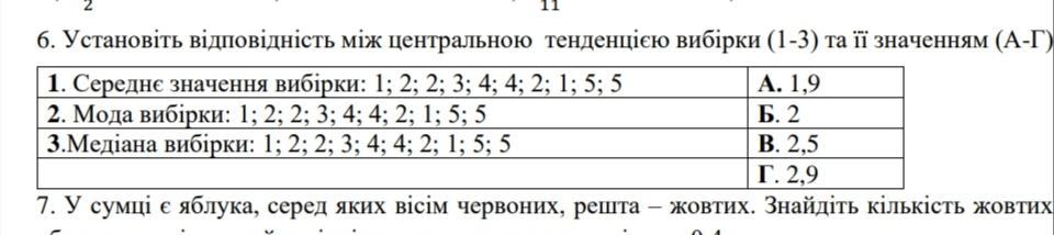 Установіть відповідність між центральною тенденцією вибірки (1-3)