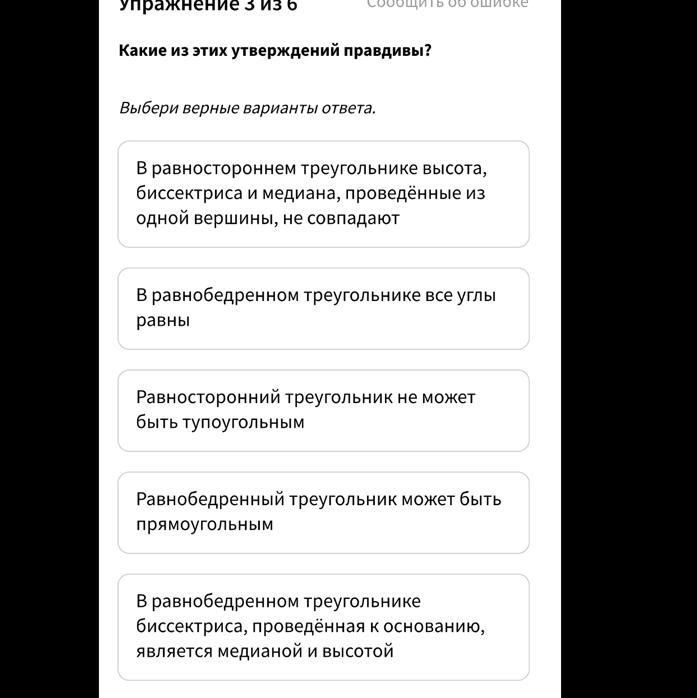 1. В равностороннем треугольнике высота, биссектриса и медиана, проведённые из одной вершины, не совпадают.