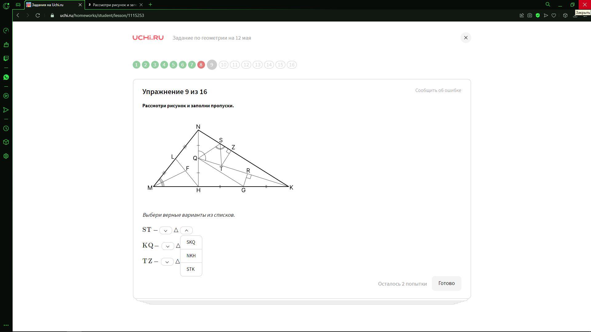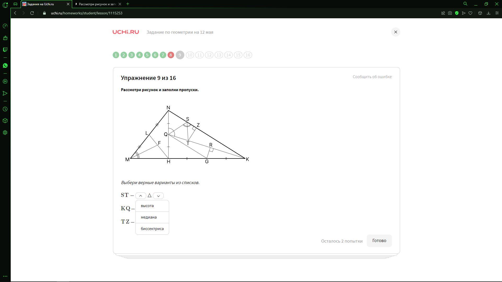 ST - биссектриса Δ SKQ (т.к. делит ∠QSK пополам)
