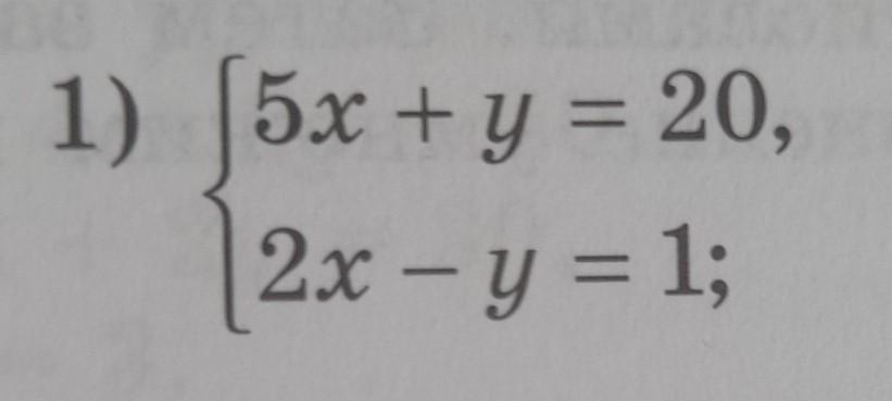 у 2х-1; 5х+2х-1=20; 7х=21; х=3; Найдем у