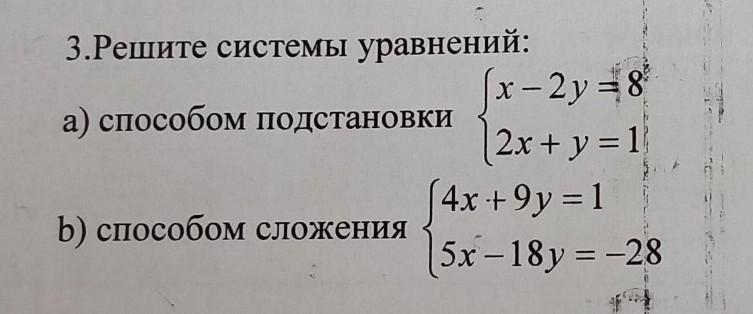 Пожалуйста можете решить только под буквой а способ подстановки и желательно на листочке чтоб всё было понятно