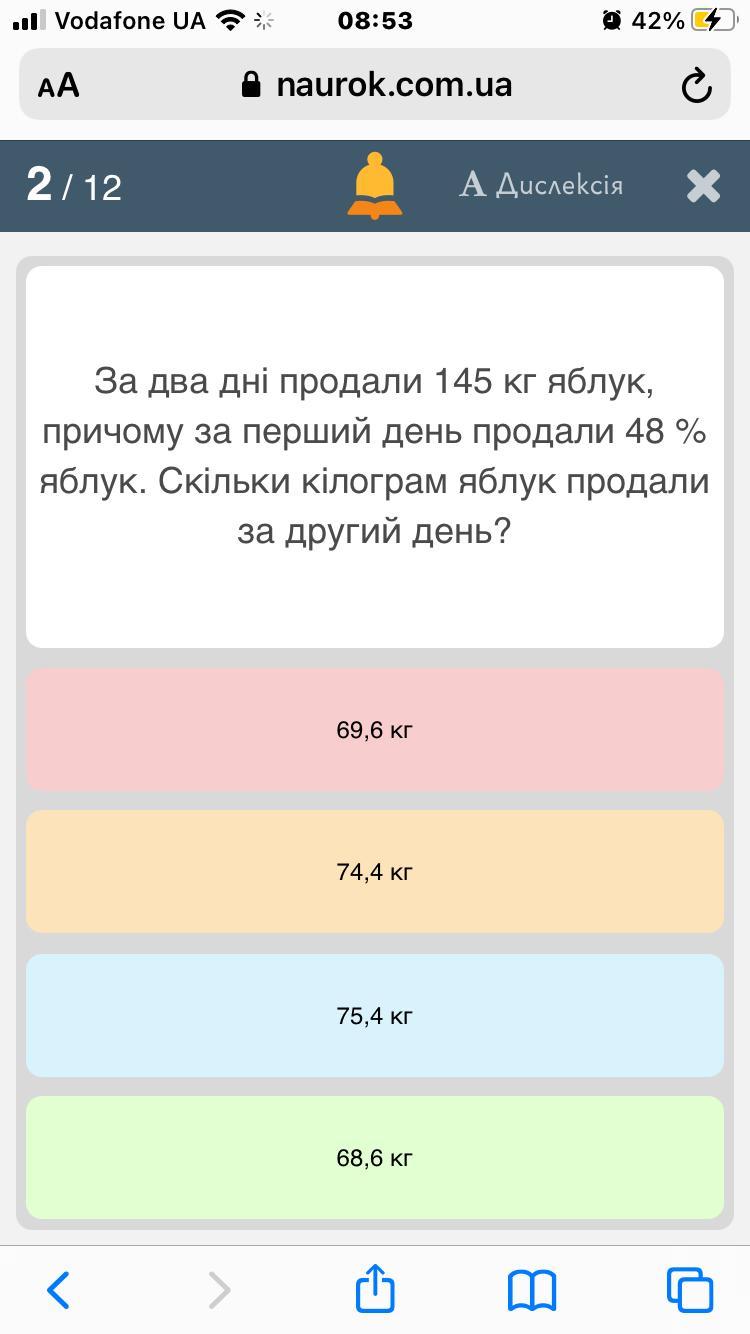 За другий день 145-69,6=75,4 кг