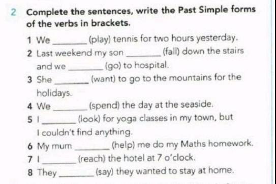 1. We played tennis for two hours yesterday.