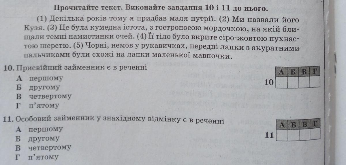 Правельні варіанти 10 В (4) ; 11 Г (5)