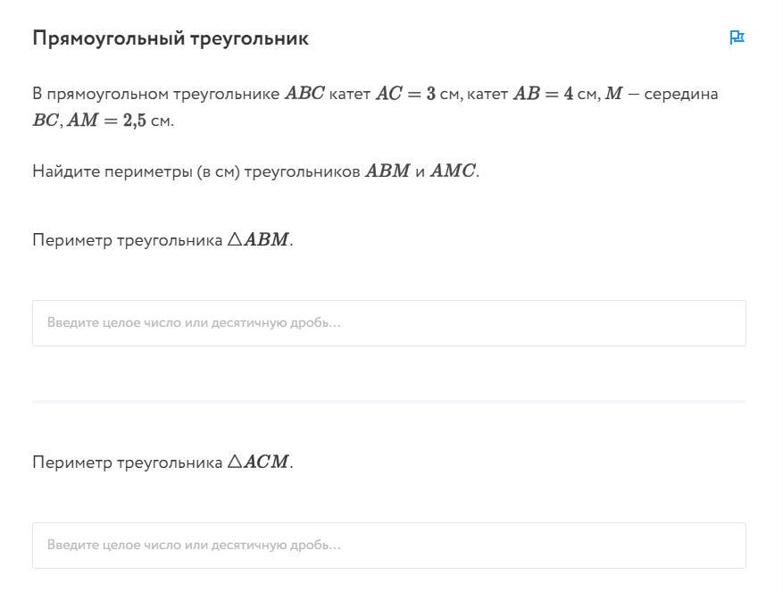 Периметр треугольника АСМ=АС+СМ+МА=3+2,5+2,5=8
