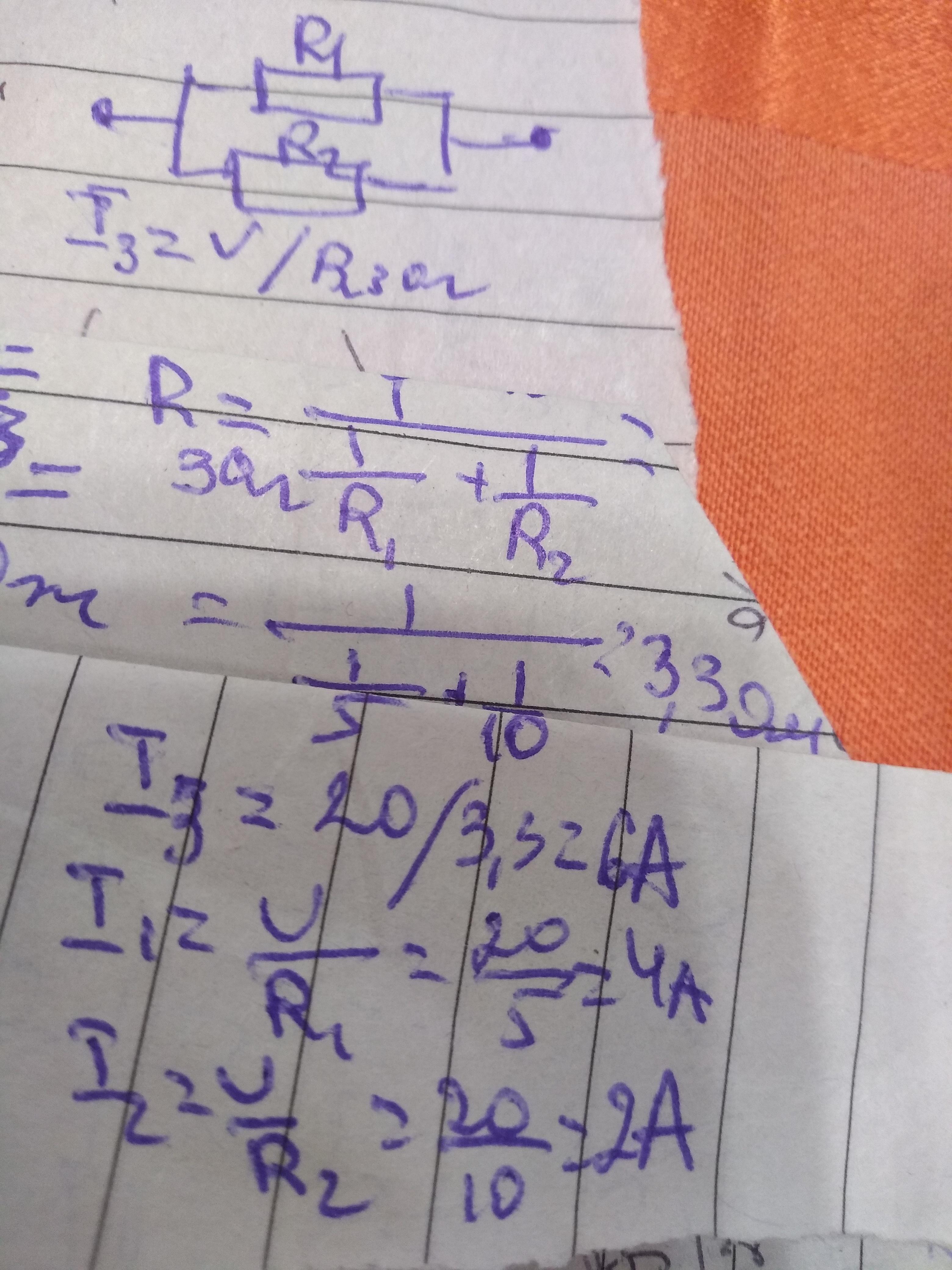 визначити загальну силу силу струму та силу струму на опорах підключених паралельно якщо R1= 5 Ом, R2= 10 Ом, U= 20В