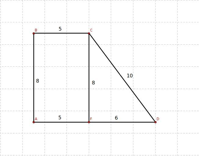 У прямокутний трапеции бильша бична сторона доривнюе 10см. Знайдить плошц трапеции якщо йийи основы доривнюють 5 см и 11 см