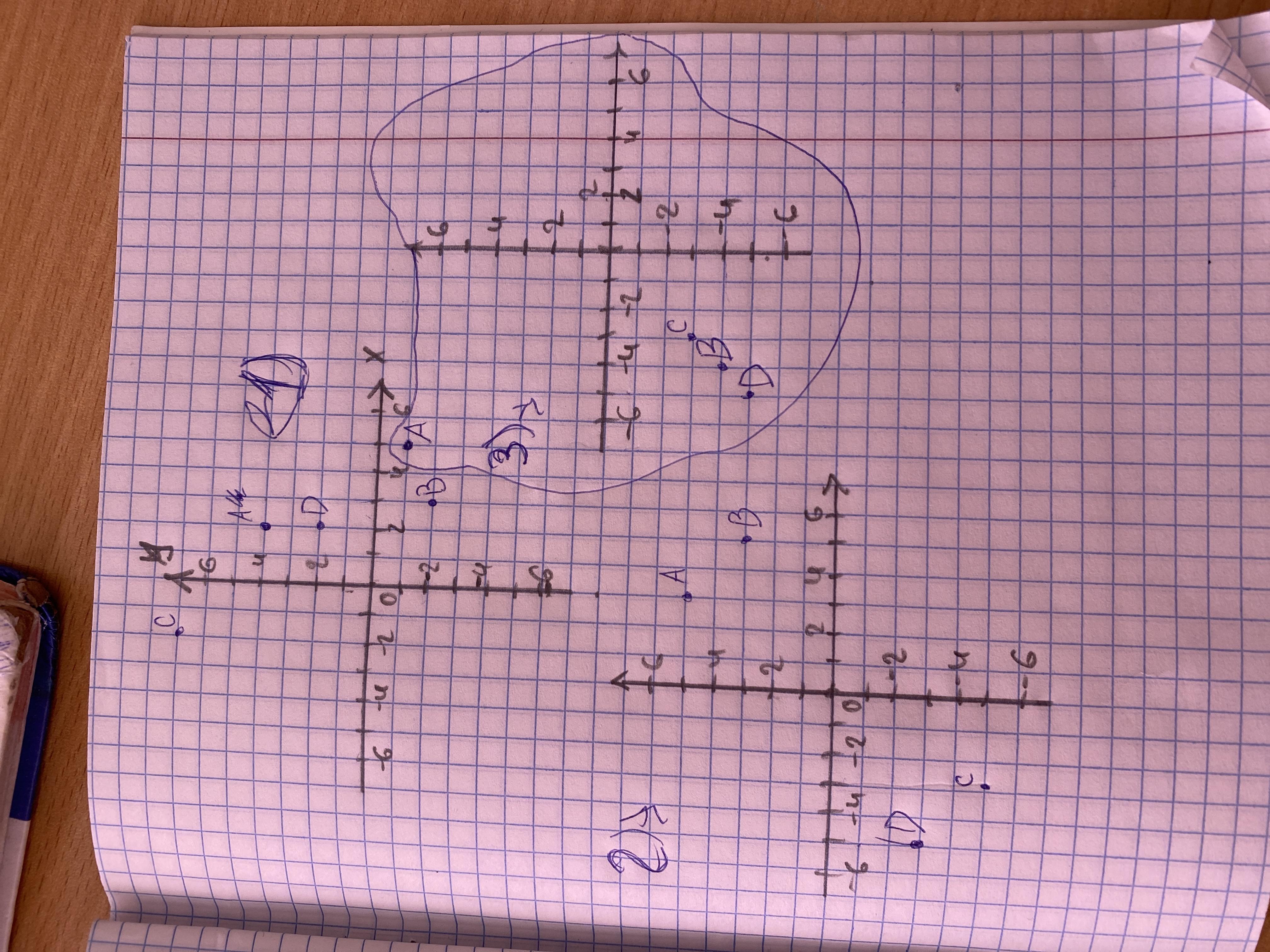 °. Задайте прямокутну систему координат на площині та по- будуйте в ній точки: 1) A (2; 4), B (3; −2), C (−2; 7), D (2; 2); 2) A (3; 5), B (5; 3), C (−3; −5), D (−5; −3); 3) A (−7; 7), B ( −4; 4), C (−3; 3), D (−5; 5). 1