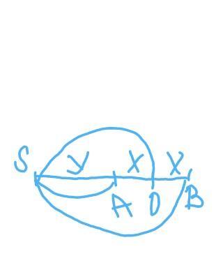 Точка О – середина отрезка АВ, а точка S лежит на прямой АВ вне данного отрезка. Докажите, что длина отрезка OS равна полусумме длин отрезков AS и BS.