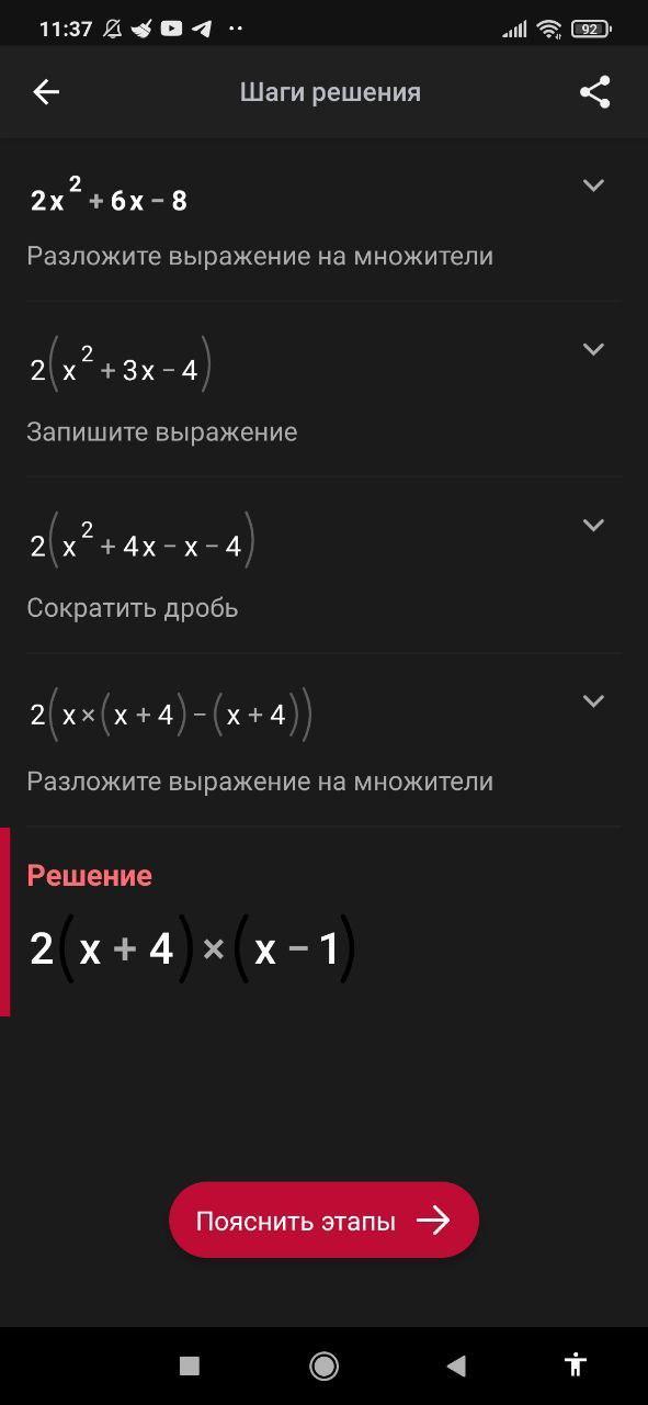 2(х * (х + 4) - (х + 4) ) = 2(х + 4)*(х - 1)