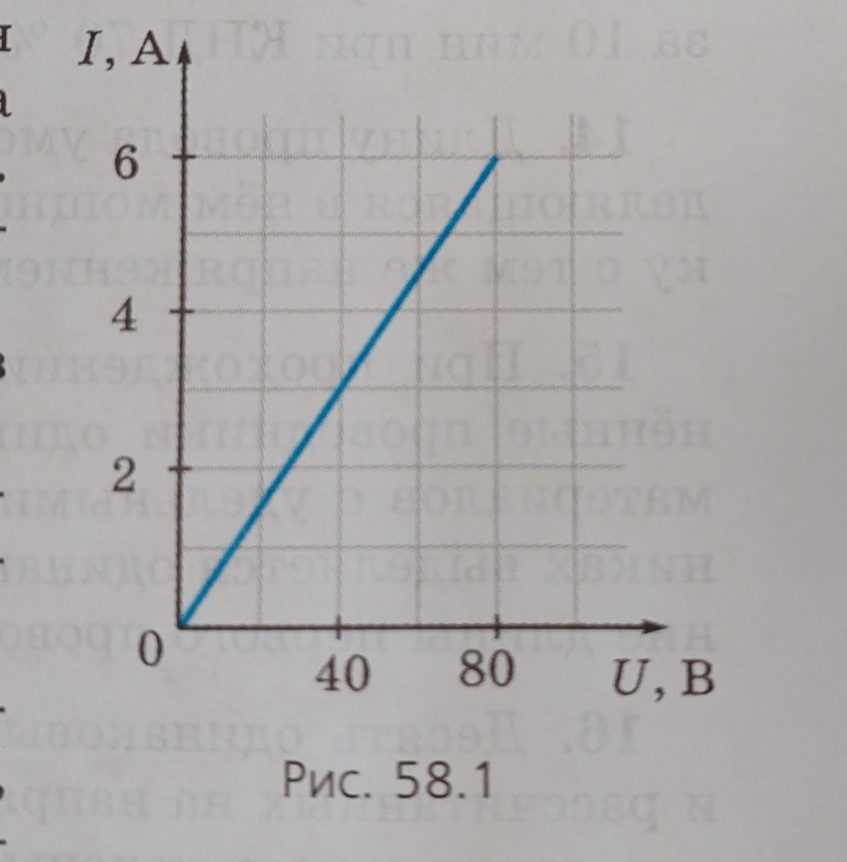 На рисунке 58.1 изображён график зависимости напряжения на концах резистора от силы тока в нем.