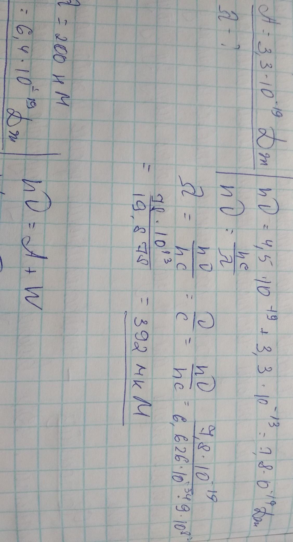 Визначте довжину хвилі світла, яким освітлюють поверхню металу, коли фотоелектрони мають кінетичну енергію5*10 ^-21 Дж, а робота виходу електрона з металу дорівнює 9*10 ^-19 Дж.