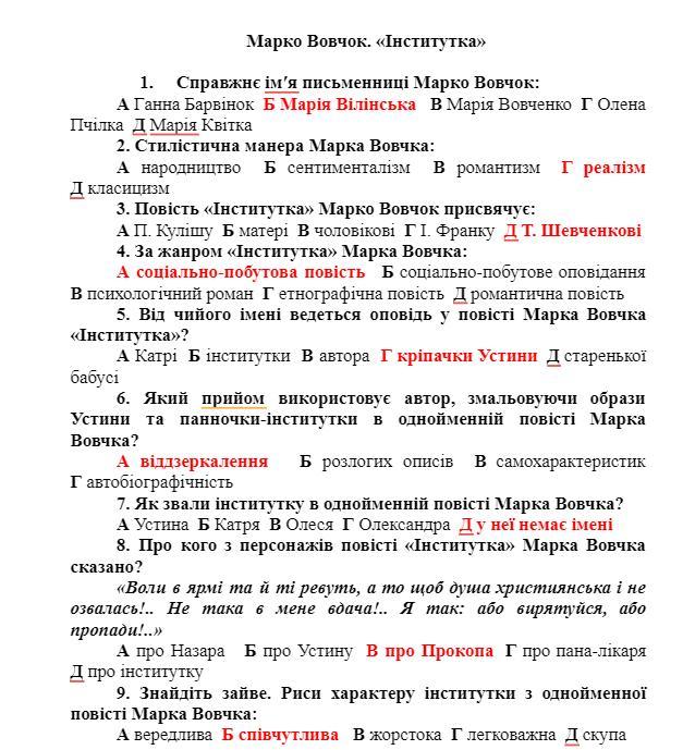 ЗНО. Марко Вовчок. «Інститутка»