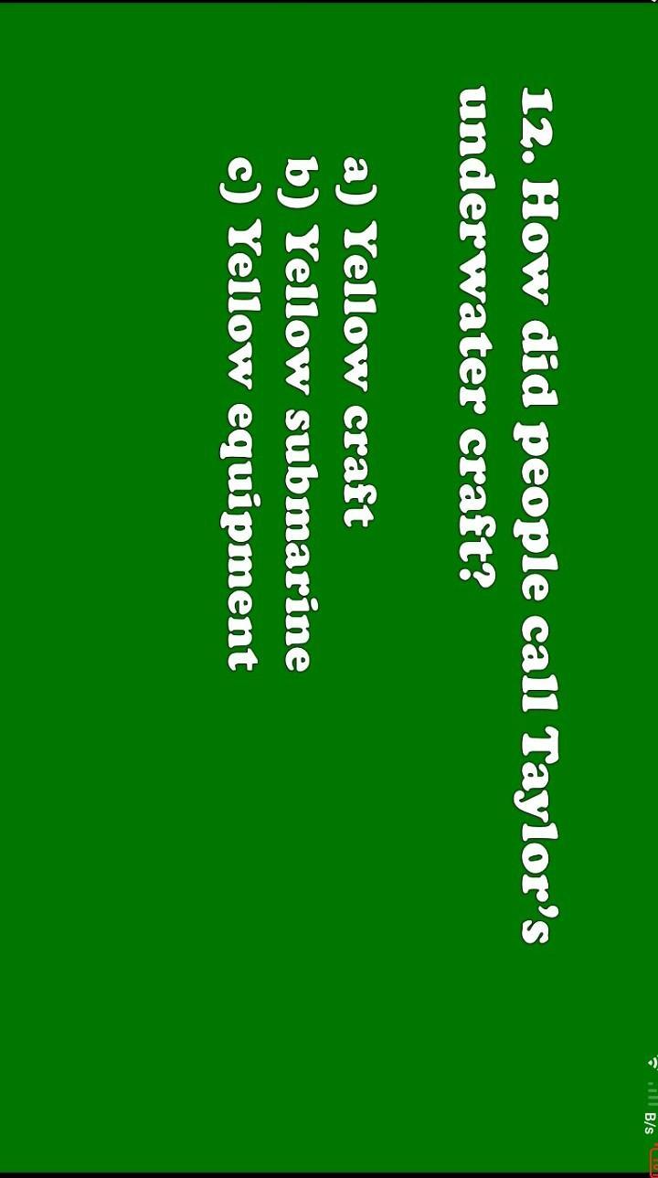 Ill B/s LUL 12. How did people call Taylor's underwater craft? a) Yellow craft b) Yellow submarine c) Yellow equipment Помогите Выбрать Ответ Буду Говорить Спасибо.