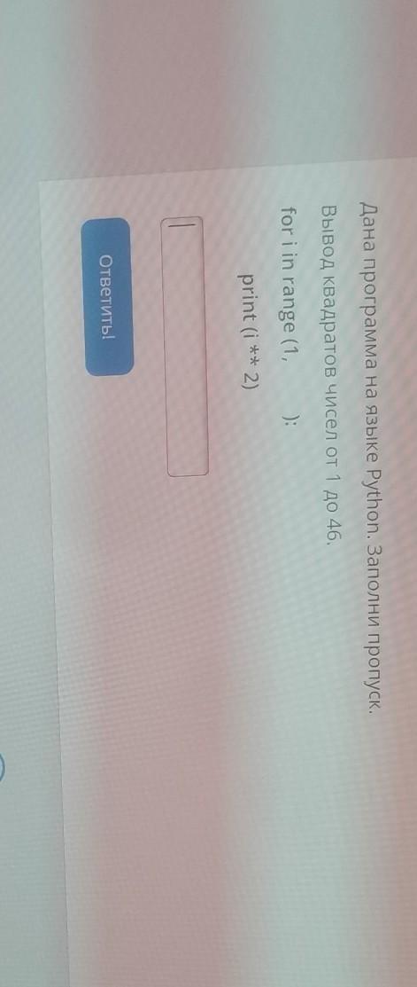 В цикле python значения идут от первого заданного до (второго заданного - 1). А нам нужно до 46. Прибавляем 1 и получаем 47