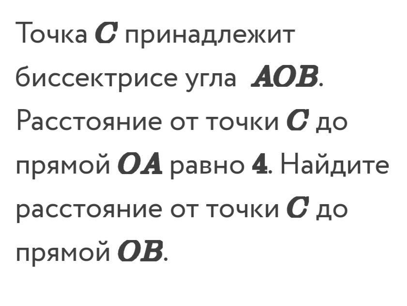 расстояние от точки С до прямой ОВ = 4