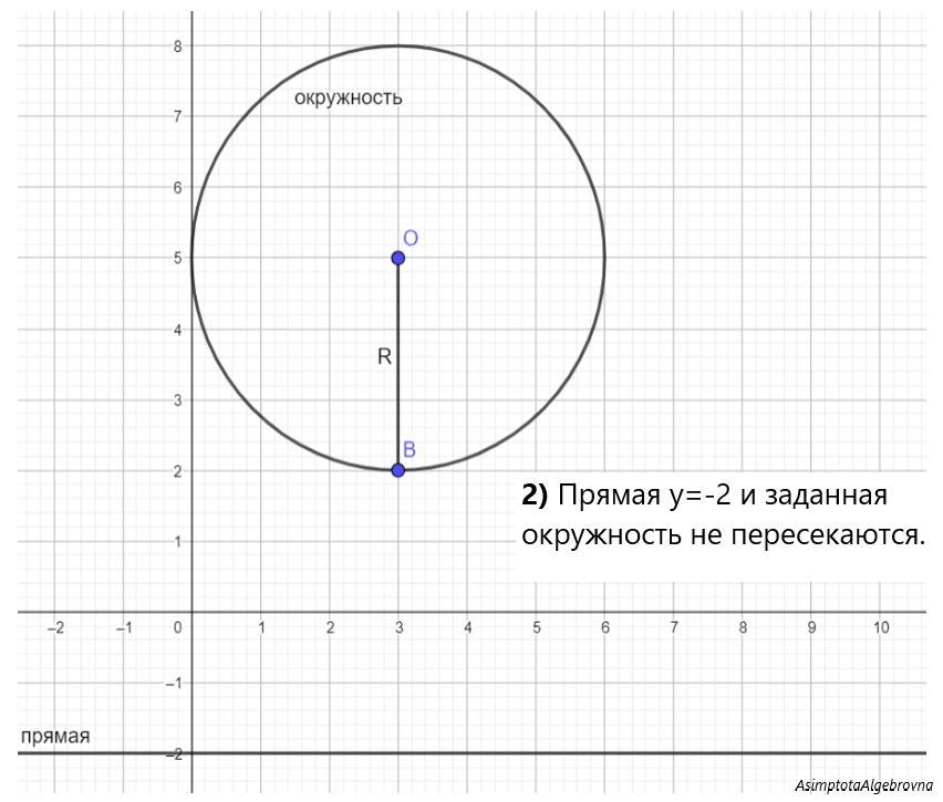 Б) Определите взаимное расположение окружности (х + 3) + (у + 5) = 9 и прямой у= -2