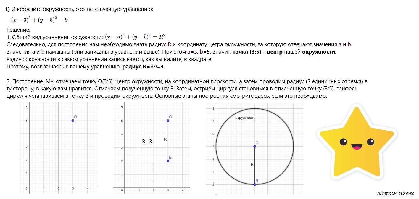 а) Изобразите окружность, соответствующей уравнению ( х- 3)² + (у - 5)² = 9.
