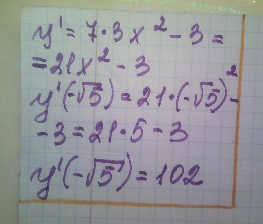 ДАЮ 50 БОЛЛОВ!!!Обчисліть значення похідної функції y=7x³-3x+0.25 у точці x=-√5