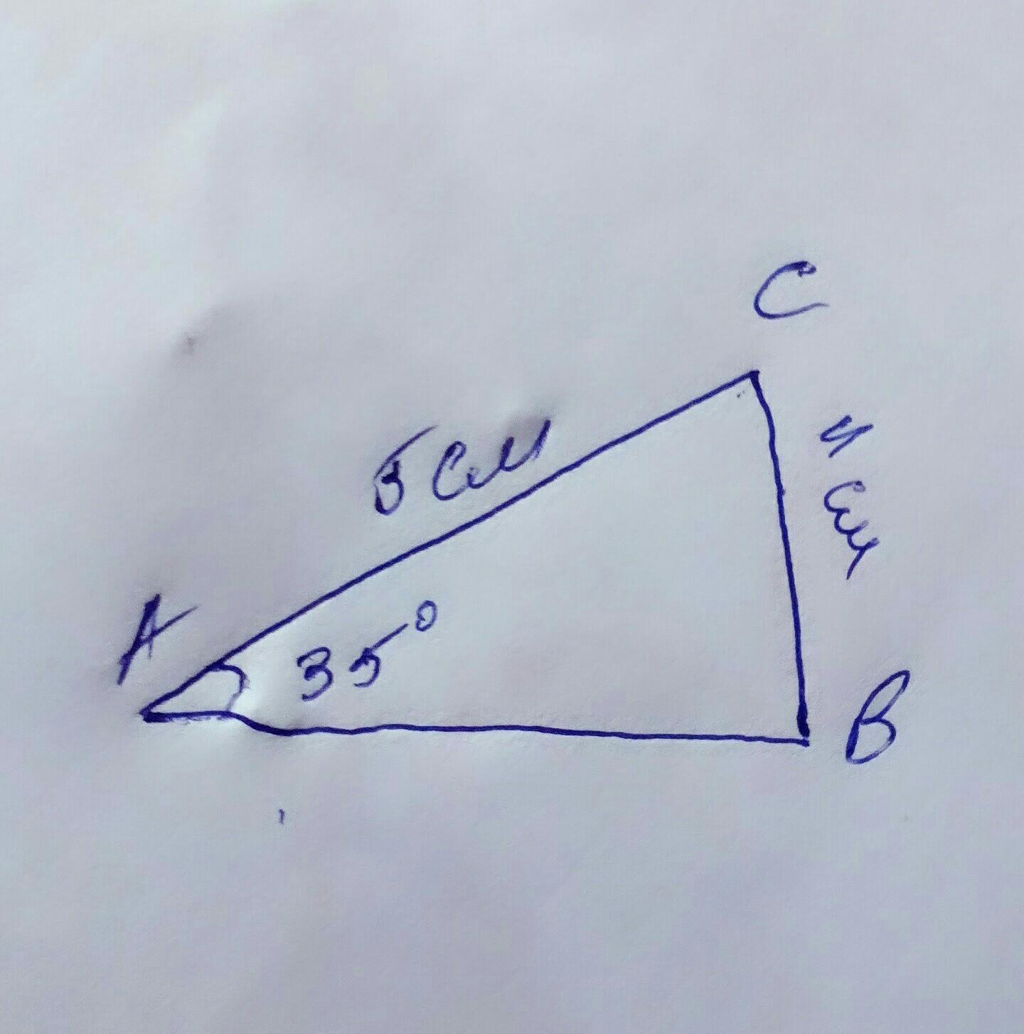 постройте треугольник АВС, если сторона АС равна 5 см, сторона АВ равна 4 см, а велечина угла а равна 35°