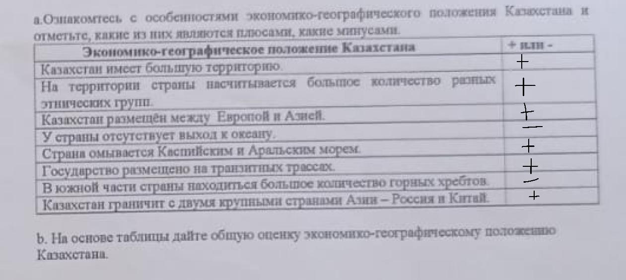 Казахстана и отметьте, какие из них являются плюсами, какие минусами
