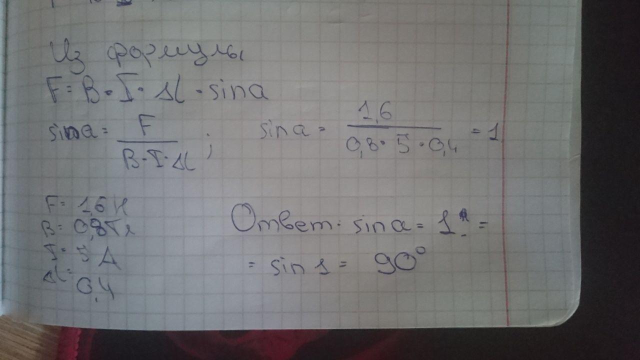 під яким кутом до ліній індукції однорідного магнітного поля повинен бути розміщений провідник довжиною 0,4 м щоб поле індукцією 0,8 тл діяло на провідник силою 1,6 н, якщо по ньому проходить струм 5 А