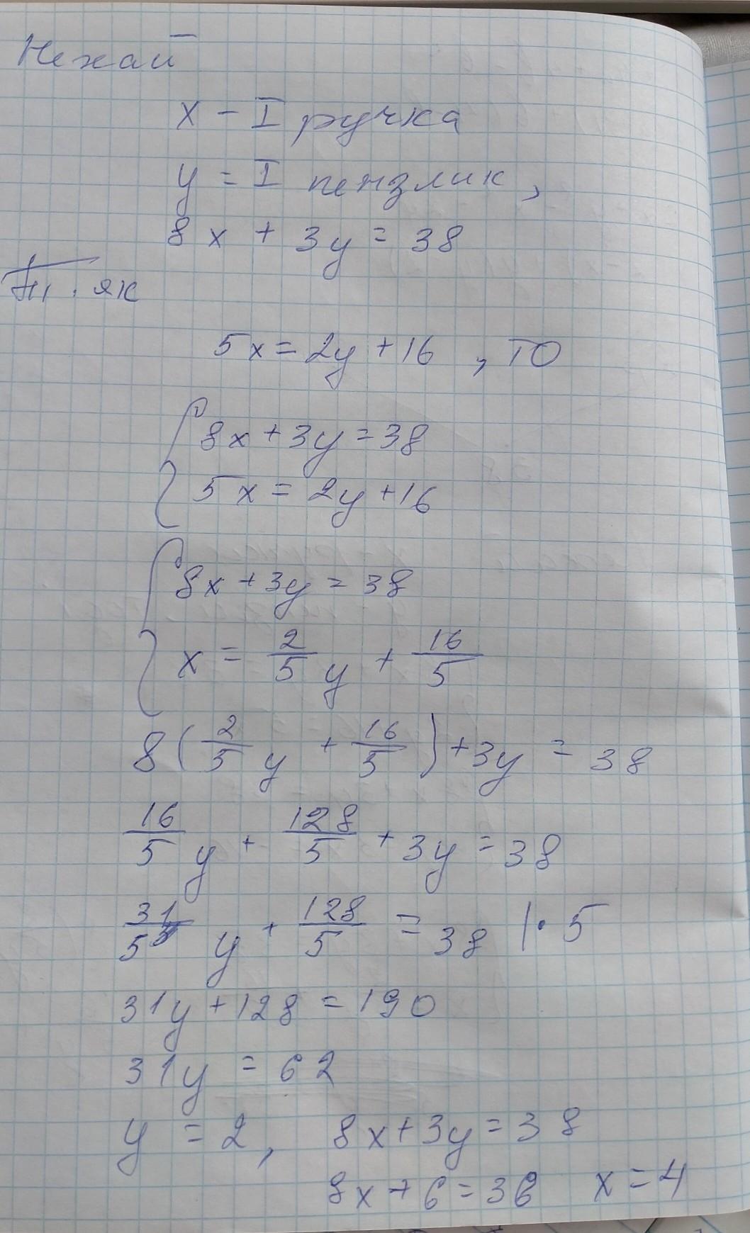 если что ,когда написали что будет за х ,а что за у ,можно добавить,что 8х-8ручек,3у- 3 кисточки,и за условием