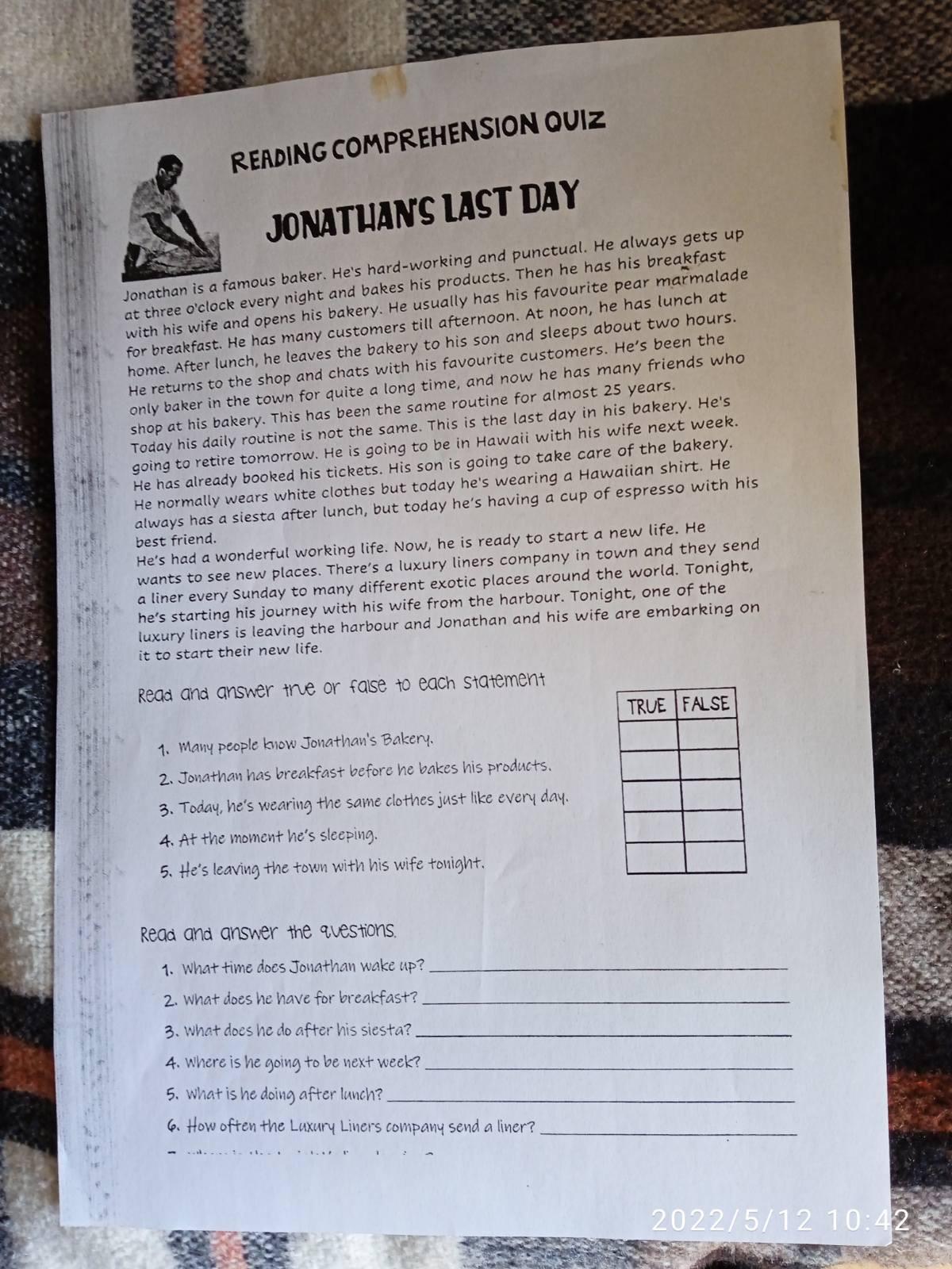 Нужно прочитать текст, выбрать True/False и ответить на вопросы к тексту.