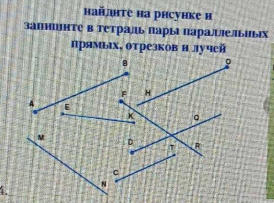 Найдите на рисунке и запишите пары параллельных прямых,отрезков и лучей! Прошу помогите !!