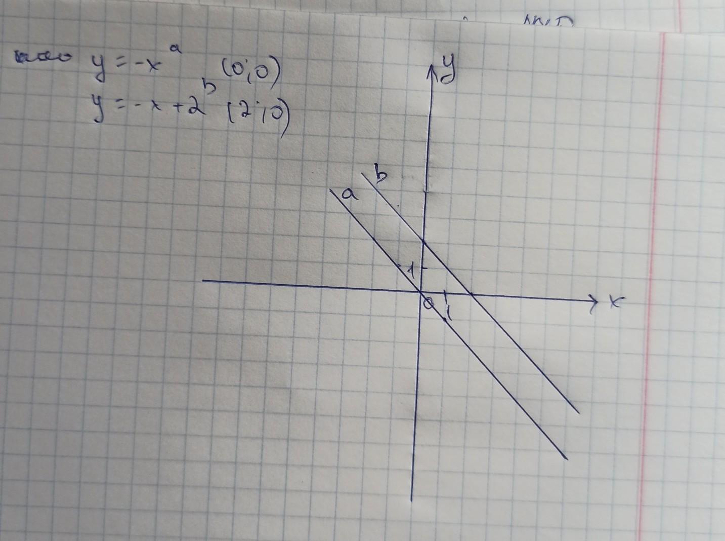 Побудуйте графіки функцій y=-х i y=-x+2 в однiй системі координат. У якій точці кожний графік перетинає вісь абсцис?