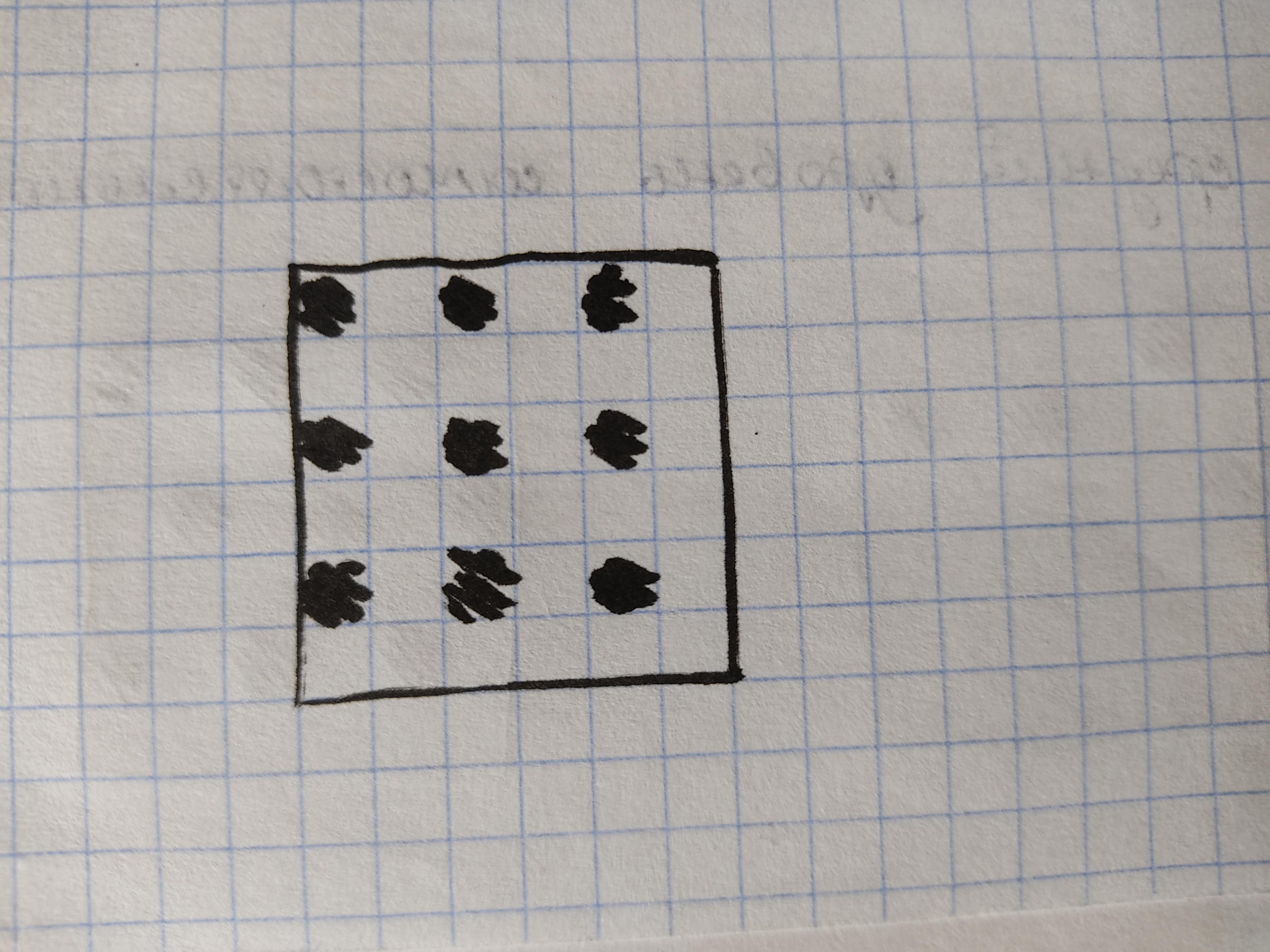 СРОЧНО!!! Дан белый клетчатый квадрат 6×6. Какое наименьшее количество клеток в нём нужно закрасить в чёрный цвет так, чтобы не осталось ни одного белого квадрата 2×2?