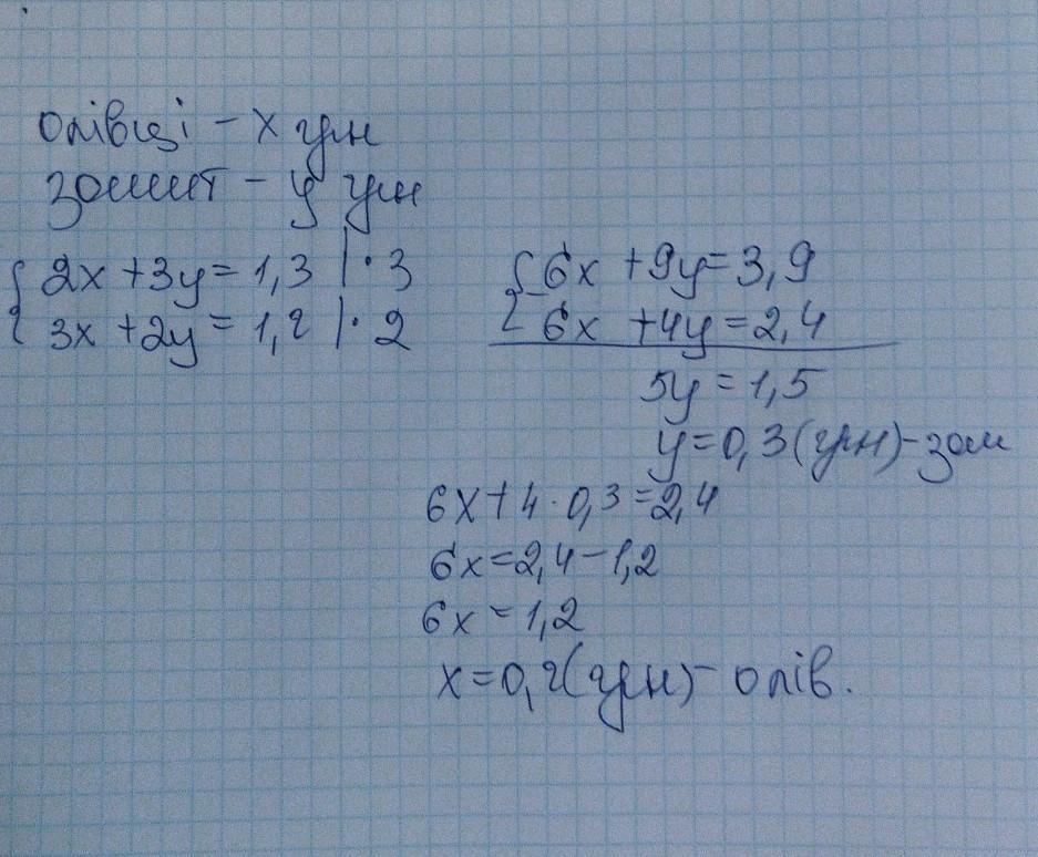 А 3 карандаша и 2 тетради стоят 3х+2у=1,2 .