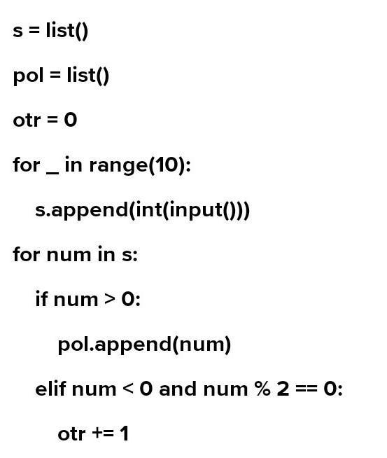Найти среднее арифметическое положительных чисел и количество четных отрицательных чисел из десяти введенных ( на языке Лазариуса)