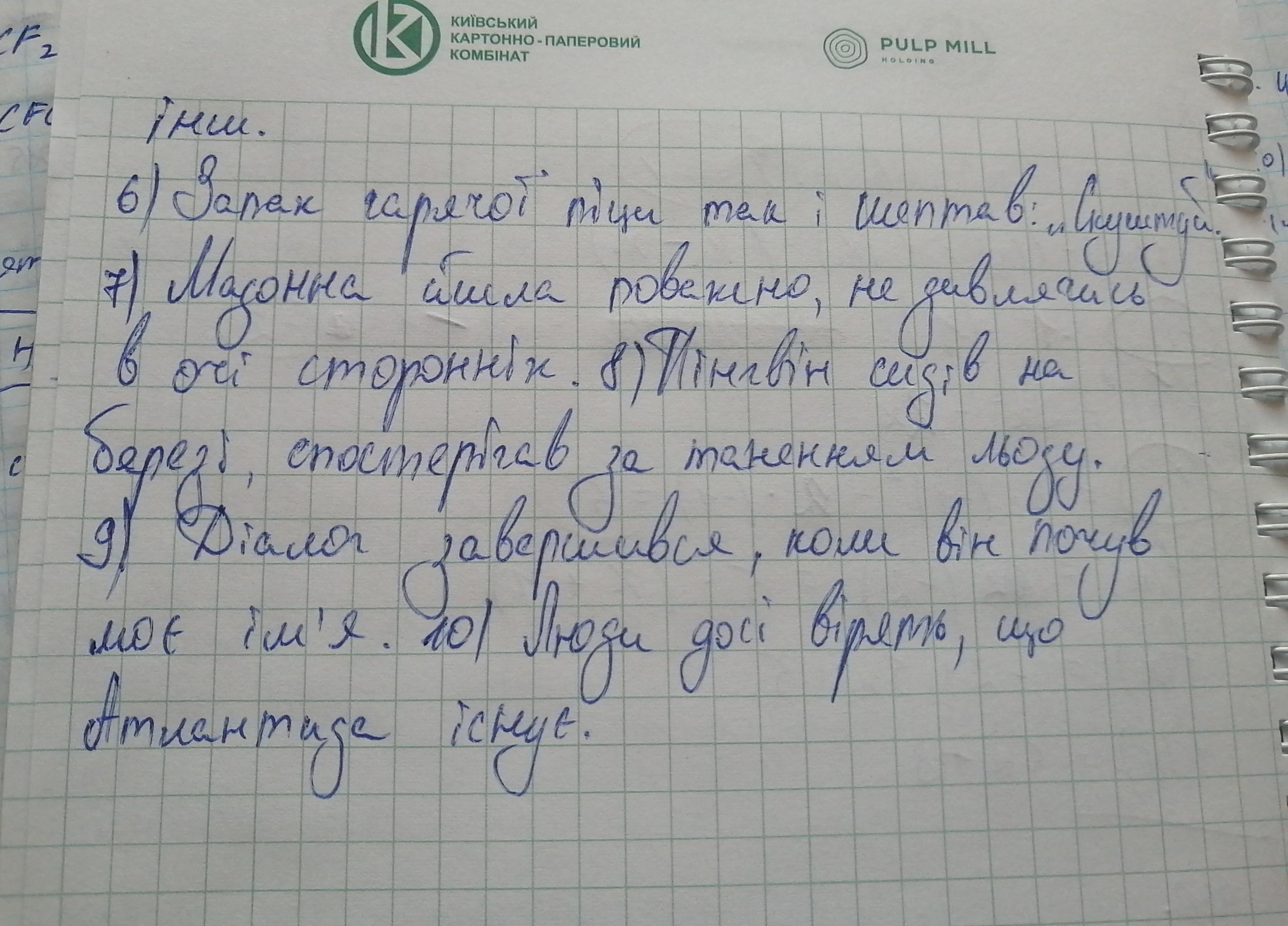 Скласти 10 речень: 5 із власне українськими словами; 5 зі словами іншомовного походження