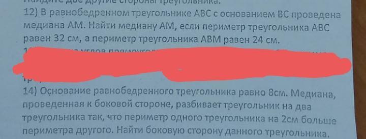 АМ - медиана в равнобедренном треугольнике, проведённая к основанию