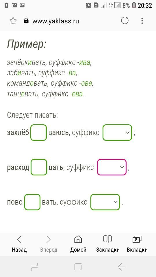 захлебываюсь, суффикс ыва