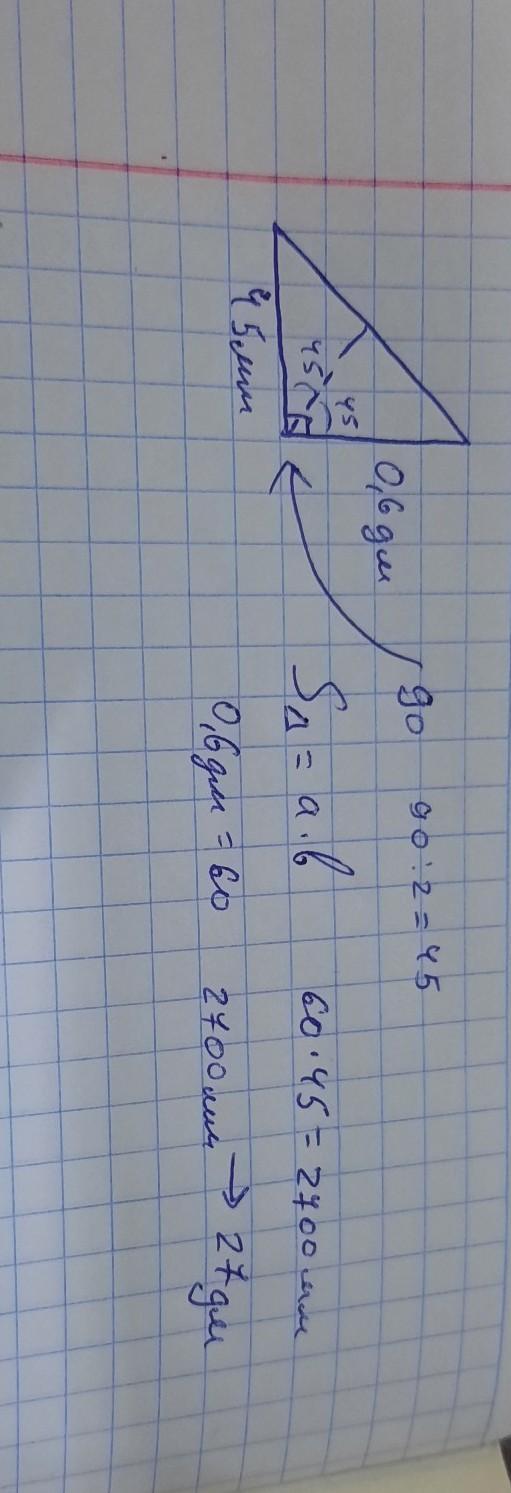 площадь треугольника прямоугольного умножить катеты на друг друга