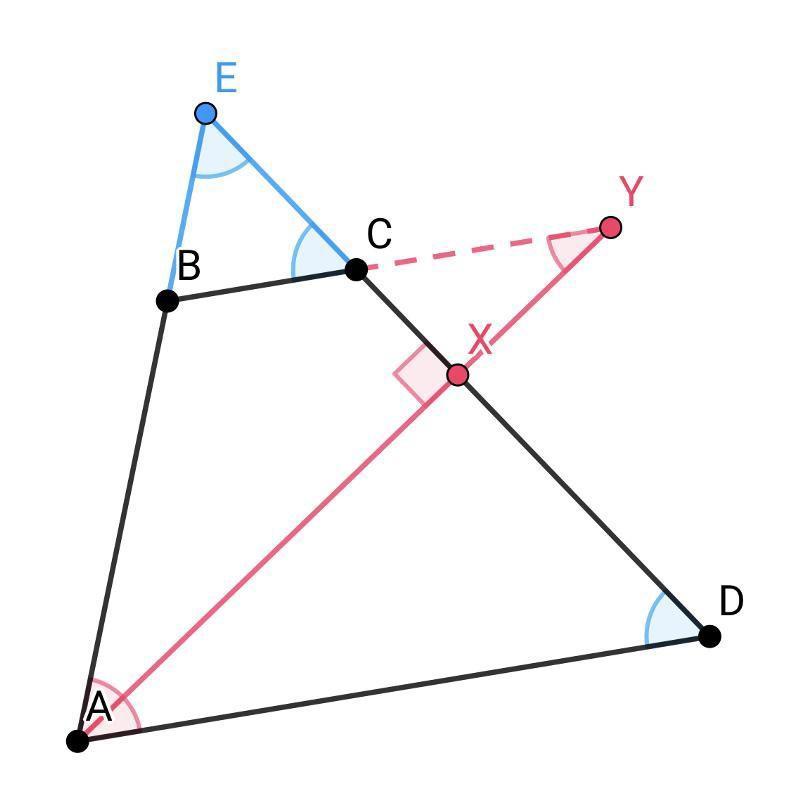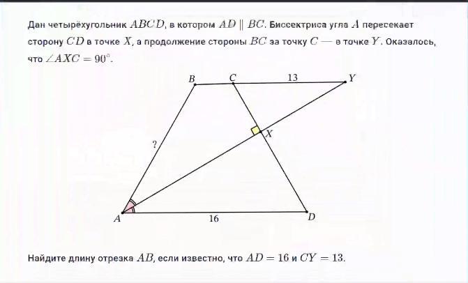 Продлим AB и CD до пересечения в точке E. В треугольнике EAD прямая AX — одновременно высота и биссектриса, поэтому он равнобедренный и