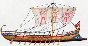 имел острый нос, киль закруглён в верх, на борту были установлены 18 гребных вёсел и два рулевых, для устрашения врагов на боковине были нарисованы большие глаза, передняя часть киля вытянута для того чтобы её можно было использовать как таран.