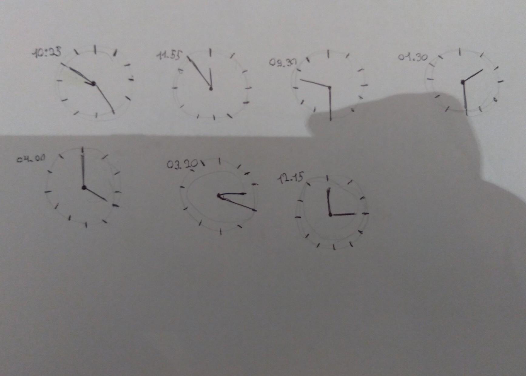 ә) Сағаттың суретін салып, уақытты белгілеп көрсет. 10.25 11.55 09.30 01.30 04.00 03.20 12.15 z , даю 13 баллов
