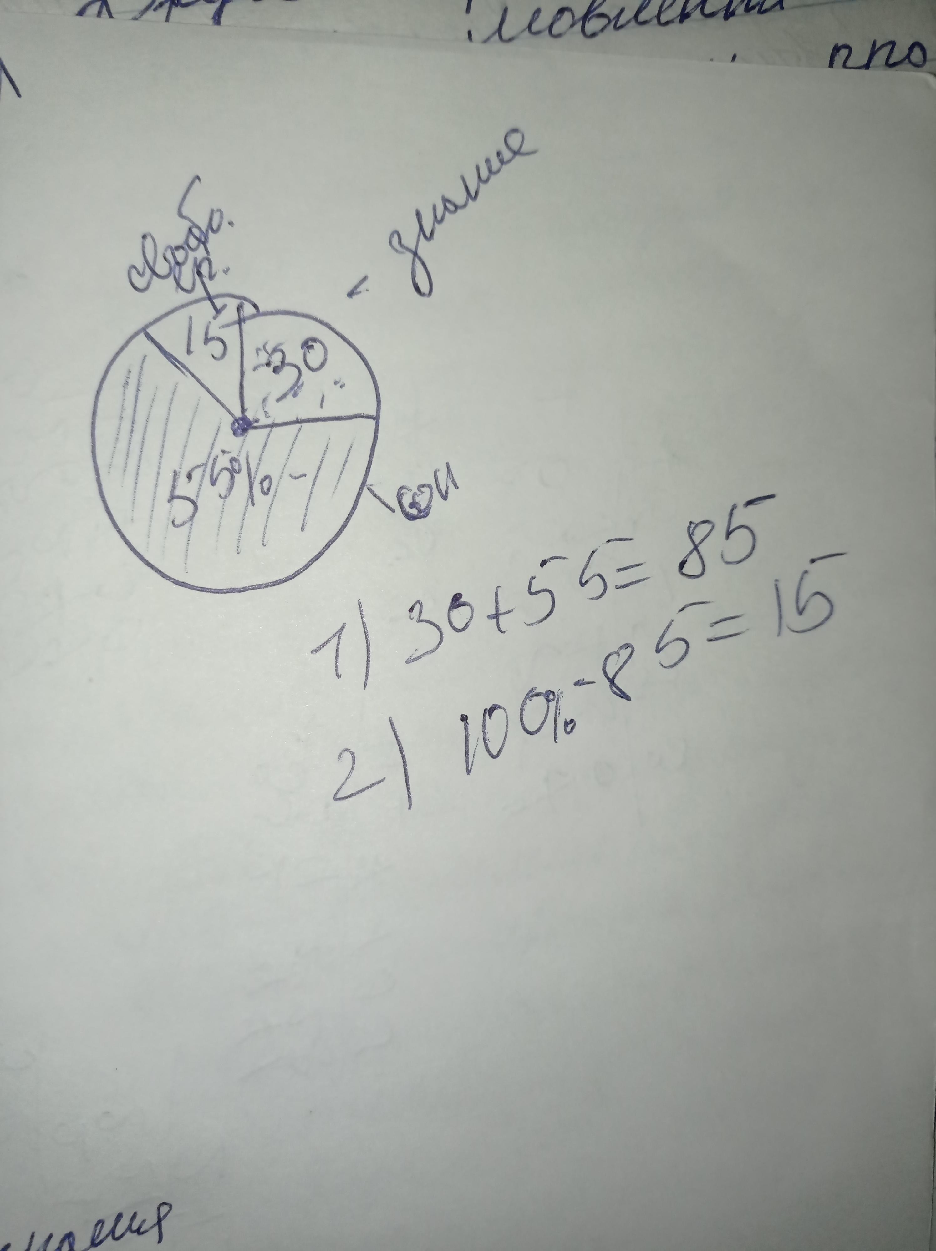 если на школьные занятия уходит 30%,на сон 55%остальное время свободное. сколько осталось свободного времени